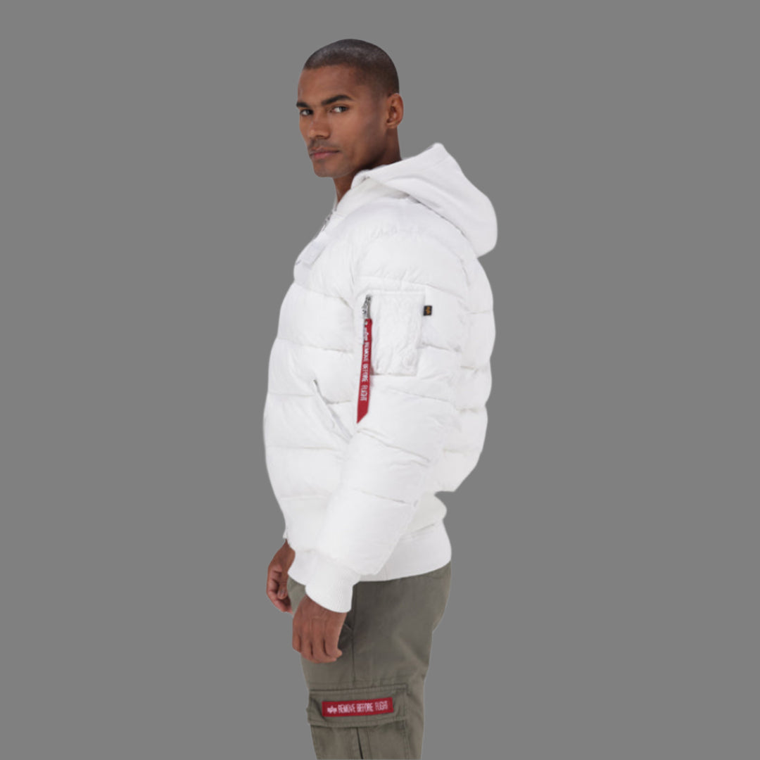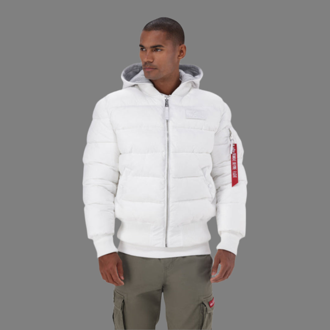 Stay warm and stylish with this military-inspired puffer jacket, combining rugged aviation aesthetics with modern comfort.